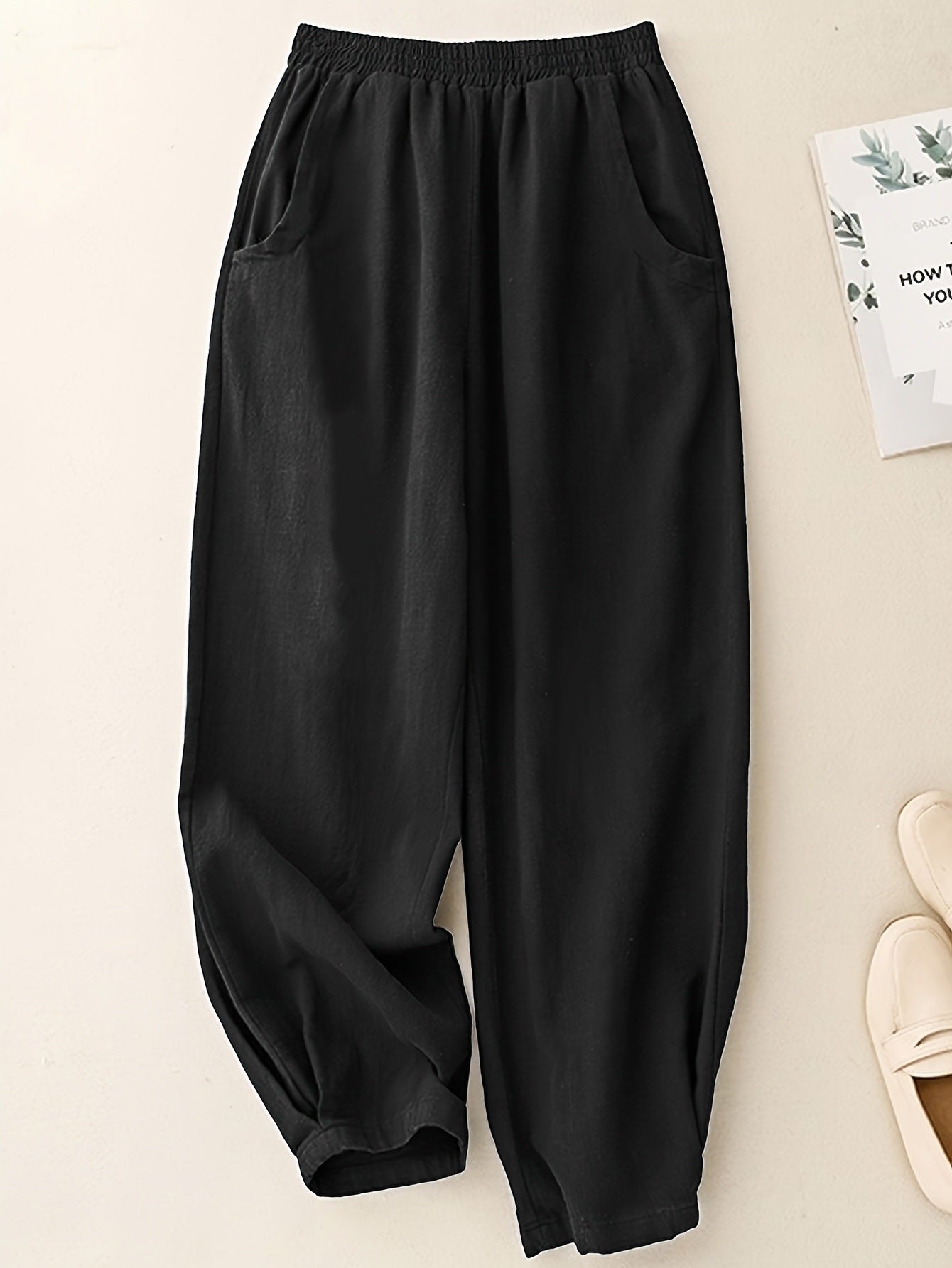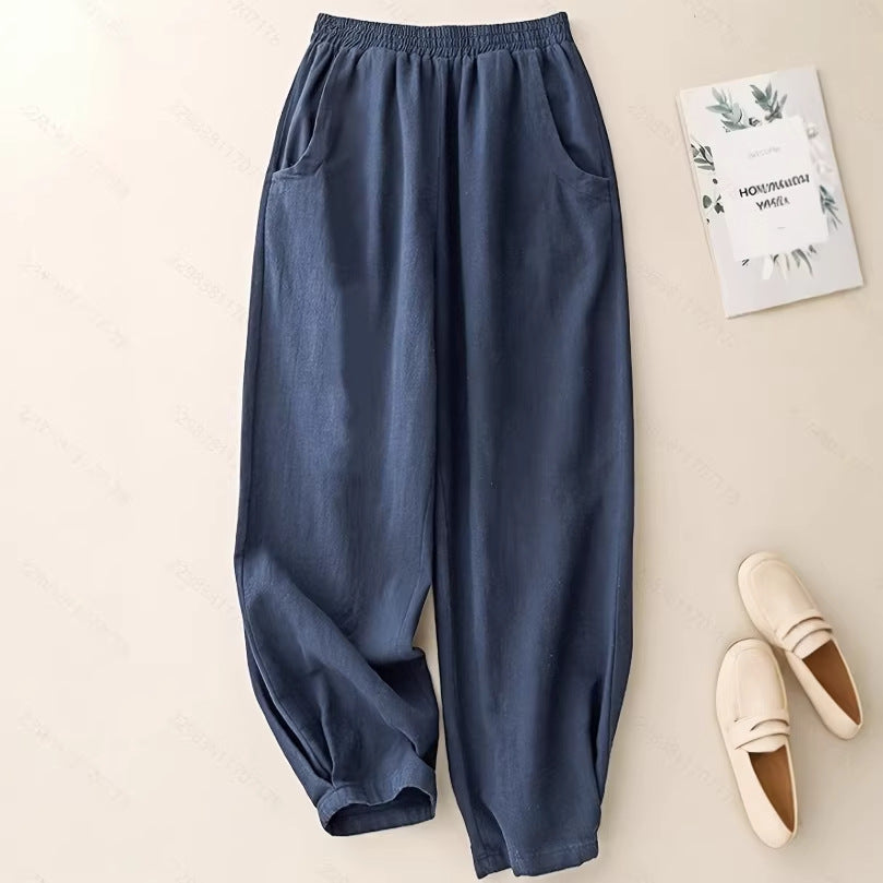 Cotton-Linen Ankle-Cinched Bloomer Pants