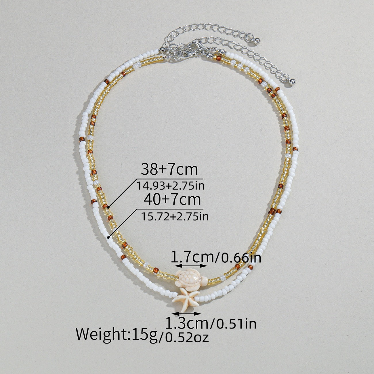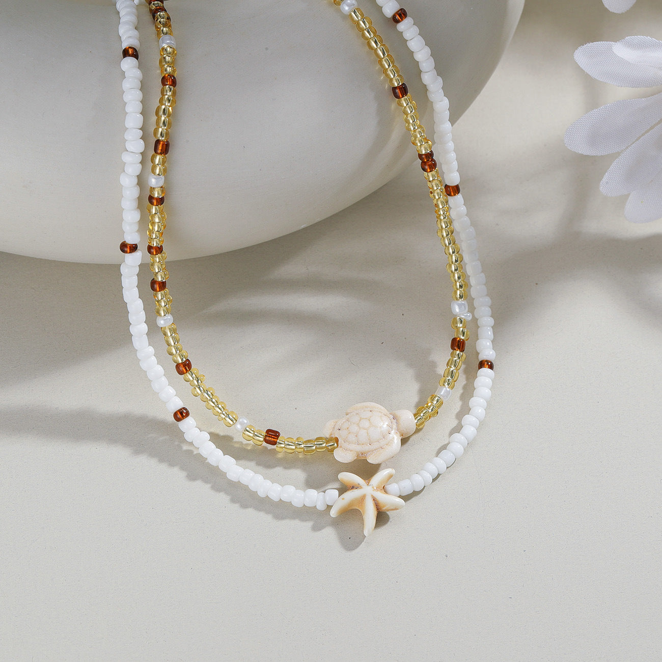 Ocean Turquoise Starfish & Turtle Seed Bead Necklace